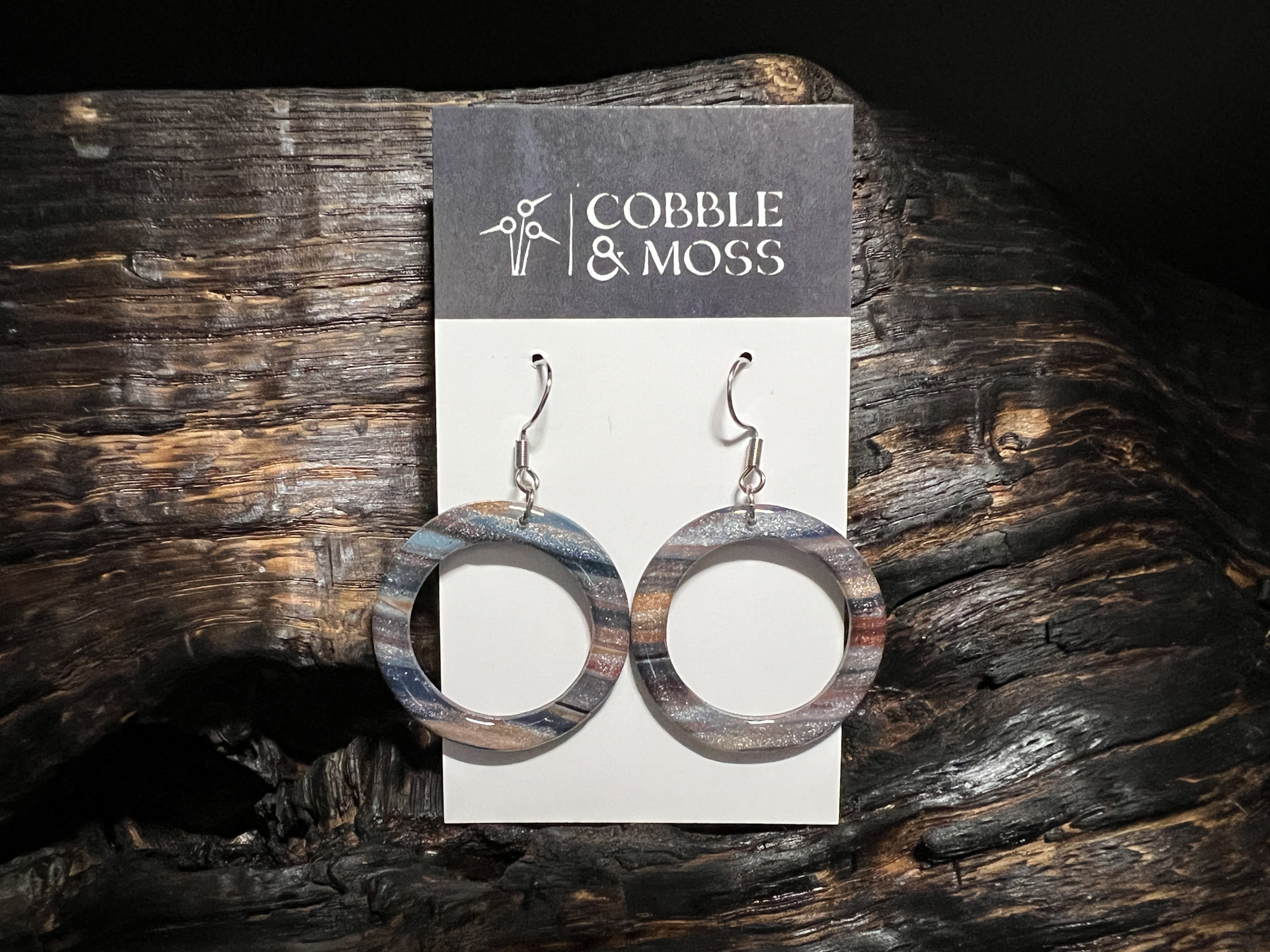 Imagine the exact moment a retreating tide pulls back over the shoreline, revealing shimmering wet sand and deep ocean pools. These handcrafted earrings capture the essence of the coast—blending the moody depths of the Atlantic with the sun-drenched warmth of a sandy beach.