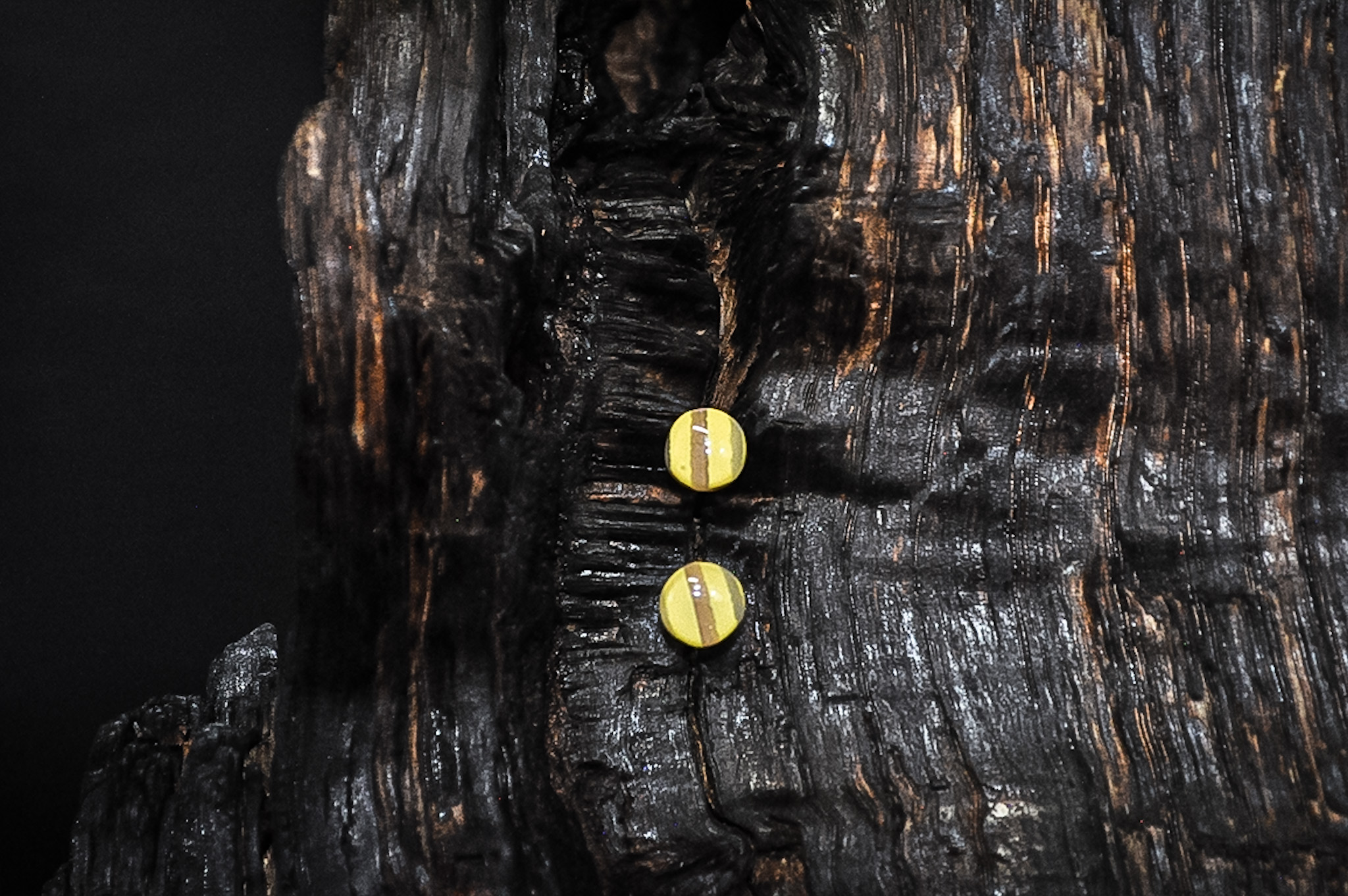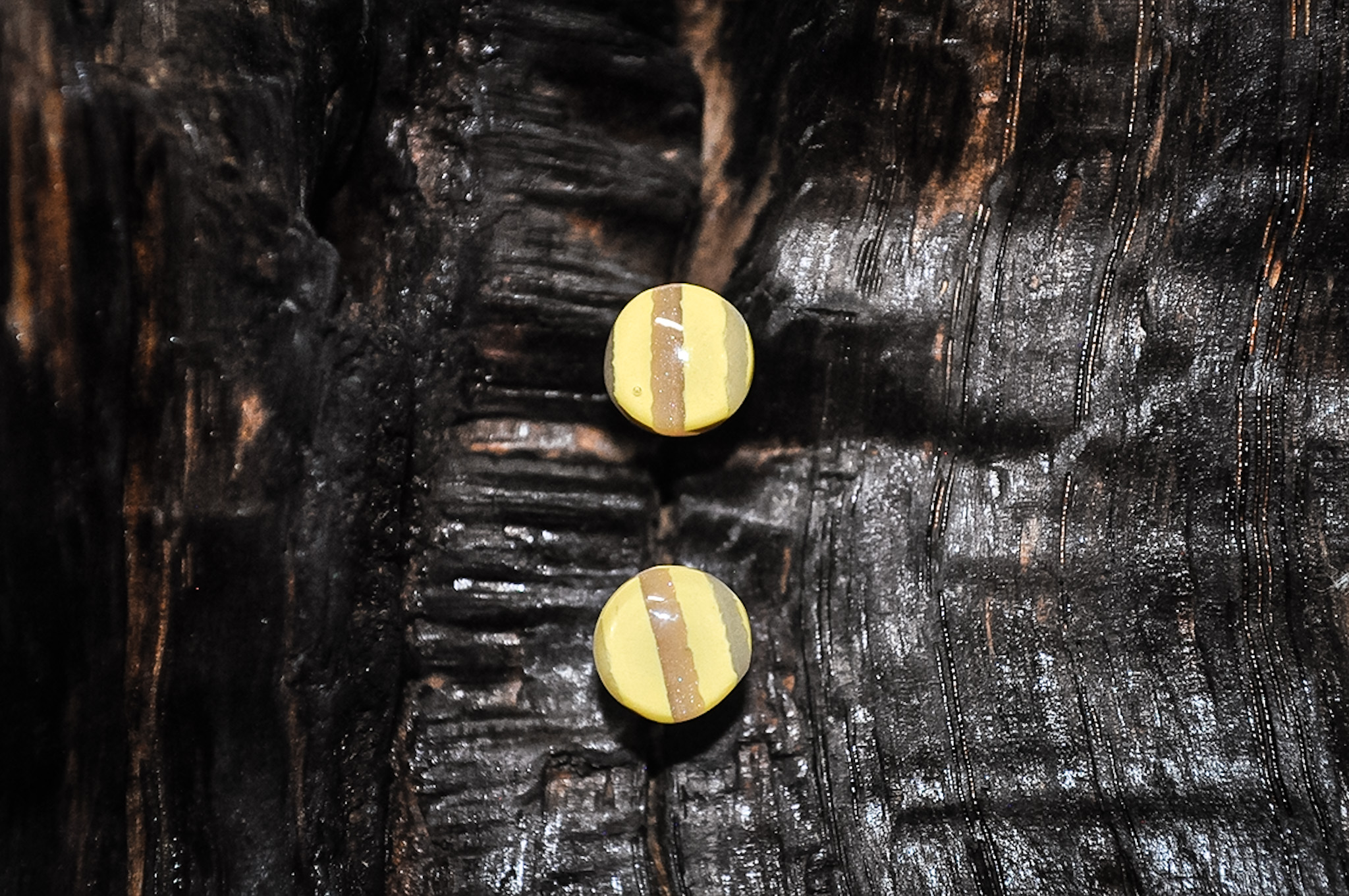 Materials: Each stud is meticulously handcrafted by layering creamy pastel yellow polymer clay with high-clarity transparent clay. This artisanal technique creates a precise “ribboned” effect that mimics the delicate banding of old-fashioned hard candies. The translucent stripes allow light to travel through the piece, giving the yellow a soft, inner radiance that feels light and refreshing.
