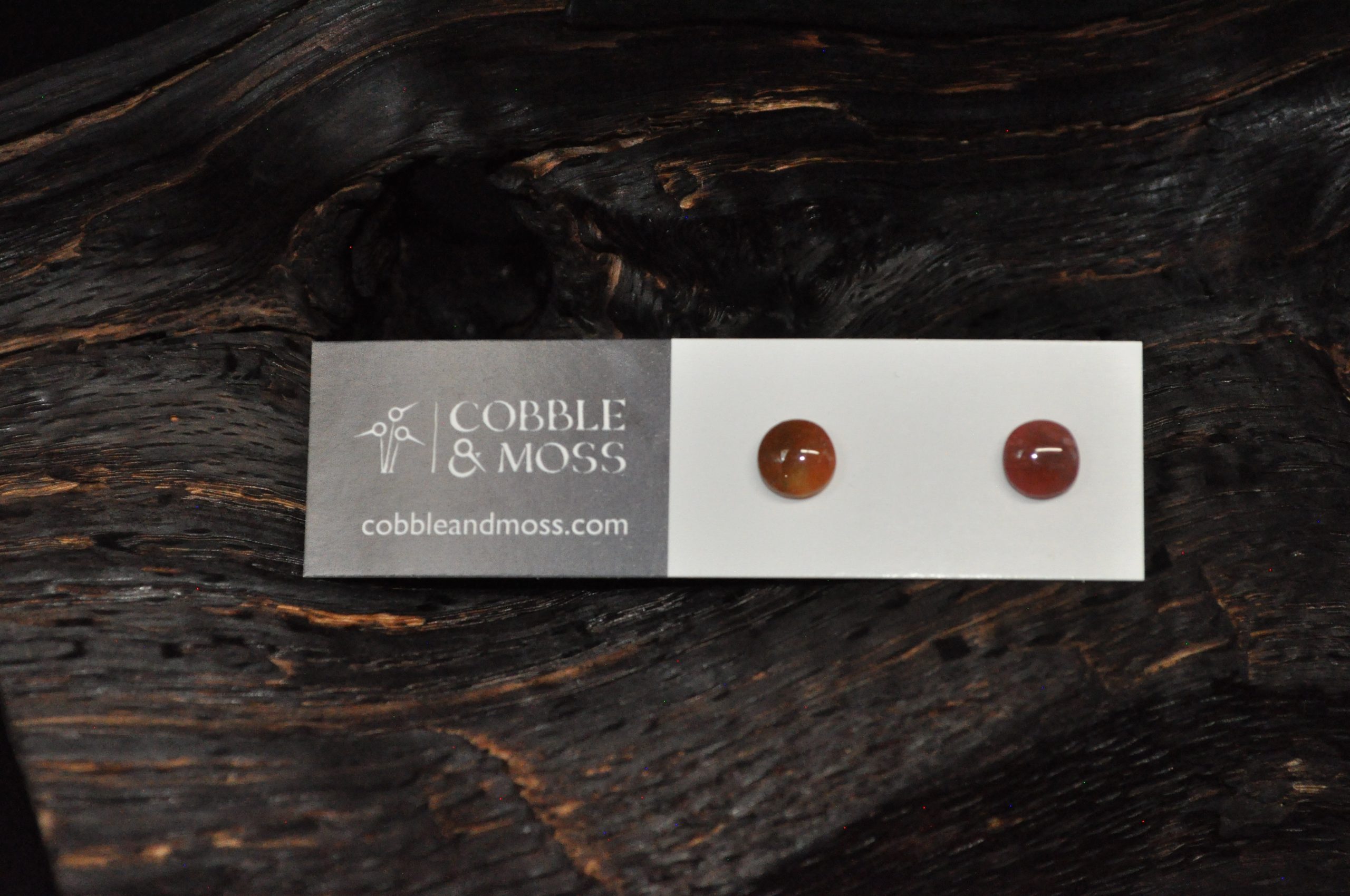 “Working with alcohol inks is one of my favorite creative challenges because the ink has a mind of its own. For this collection, I wanted to capture the warmth of a deep, glowing orange. Watching the colors marble and settle into the clay is always a surprise, and the final resin pour really makes those fiery tones pop. I hope these studs add a bold, joyful spark to your day!”