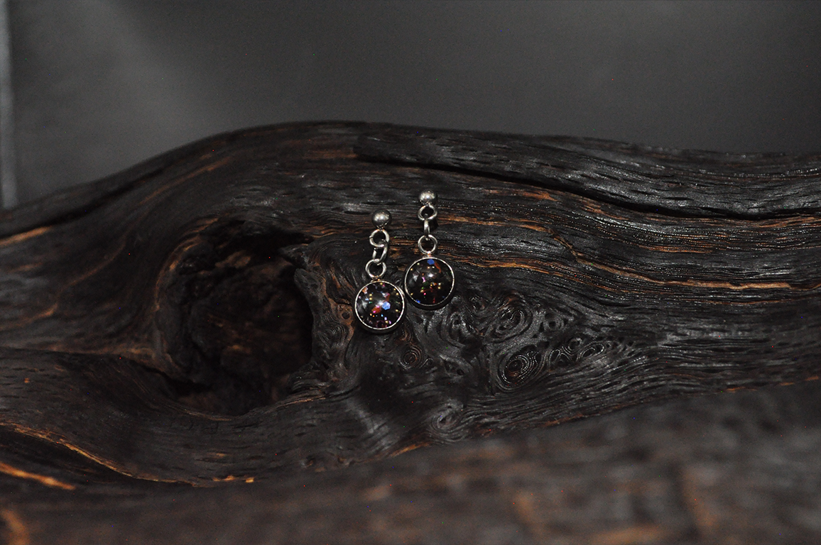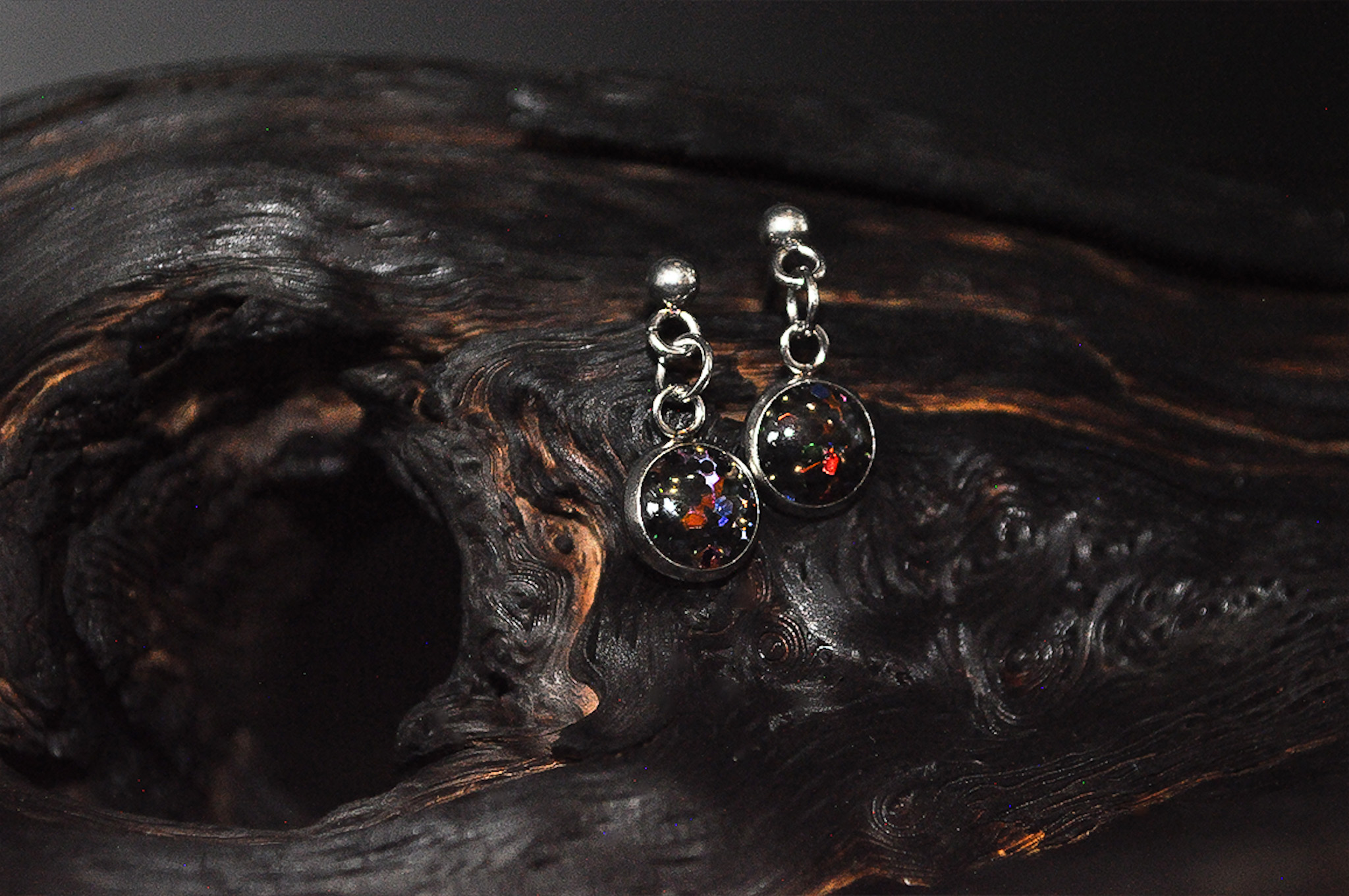 “In The Cobbled Curios series, I often look for beauty in contrast. I love how the minimal silver glitter looks against the black—it’s not a ‘glitter earring’ in the traditional sense; it’s more like a night sky or a piece of polished granite. It’s for the person who loves black but wants that tiny, curious spark that catches the light only when they move. It’s a quiet kind of magic.”